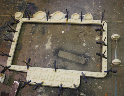 I glued up all the bits today, leaving them to cure over night. Tomorrow we will start in on paint and the detailing. I can hardly wait to fit it into place around the TV. Stay tuned...
