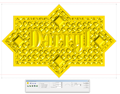 The diamonds were next. Since I wanted faceted edges I used the limit height command with the bevel tool. This would clip the top of the diamonds. Again they were created as individual reliefs so they could be floated into position before being merged with the base relief.