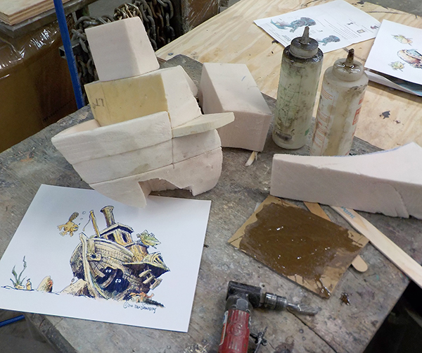 I am building a small study model of a sunken paddle wheeler for an upcoming project. I sketched out the shape onto the board with a felt marker and then used a hand saw to rough out the shape. It only took a few minutes to carve the complex shape out of the block, and a few minutes more to use a two part epoxy to glue the pieces together. Tomorrow I'll start adding the detailed epoxy skin. Stay tuned for a report on how the foam works in the next few days...